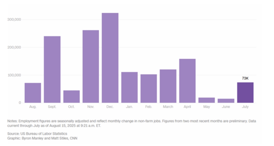 최근 고용 데이터는 예상보다 부진했습니다. 7월 비농업 신규 고용은 7만 3천 개에 그쳤고, 5월과 6월 수치도 각각 1만 9천 개, 1만 4천 개로 하향 수정됐습니다. 실업률도 **4.2%**로 상승하며 고용시장이 점점 식고 있는 모습입니다. 특히 기술업계에서 2024년 이후 15만 개 이상 일자리가 사라졌고, 올해만 2만 개 이상의 감원이 이어졌습니다. 이런 상황에서 Fed의 ‘고용 안정’ 목표가 다시 주목받고 있습니다.