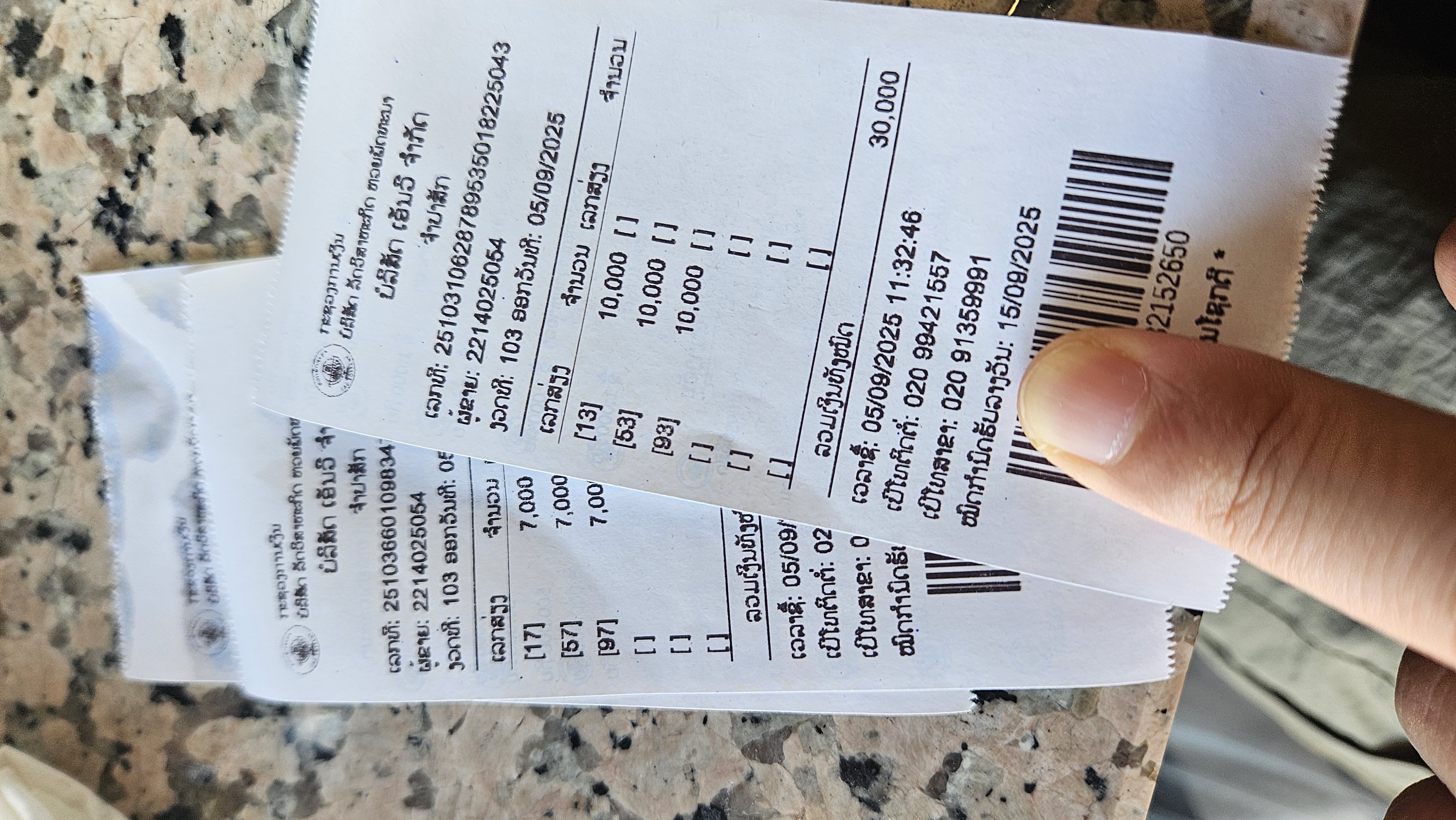 라오스의 복권 가격은 영수증을 보시면 2자리 번호를 베팅했어요.